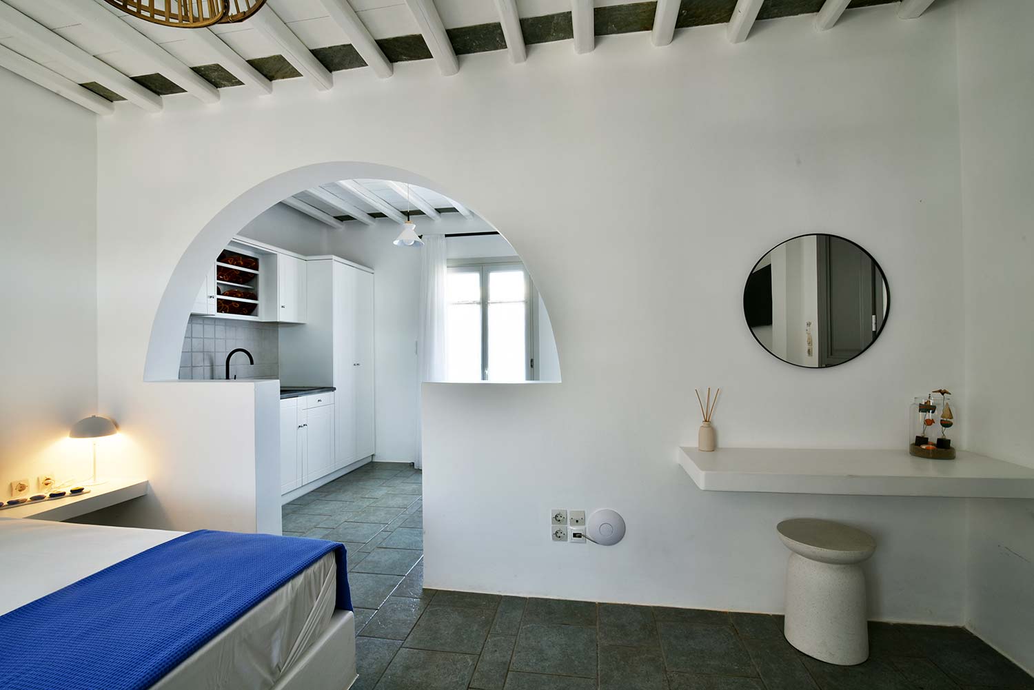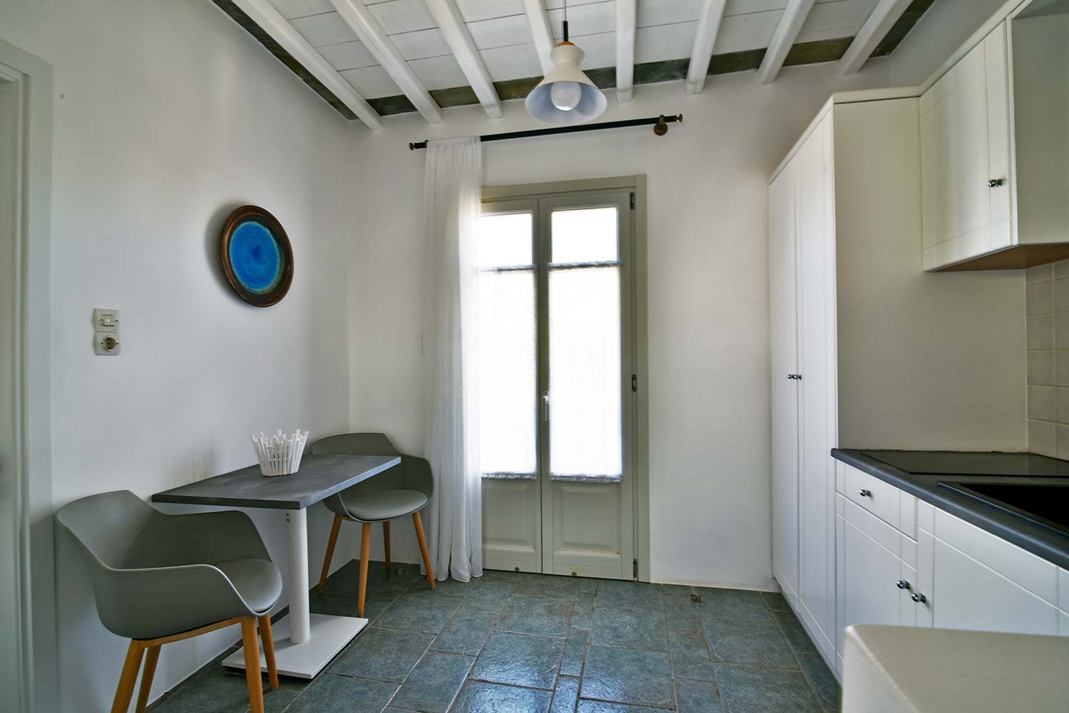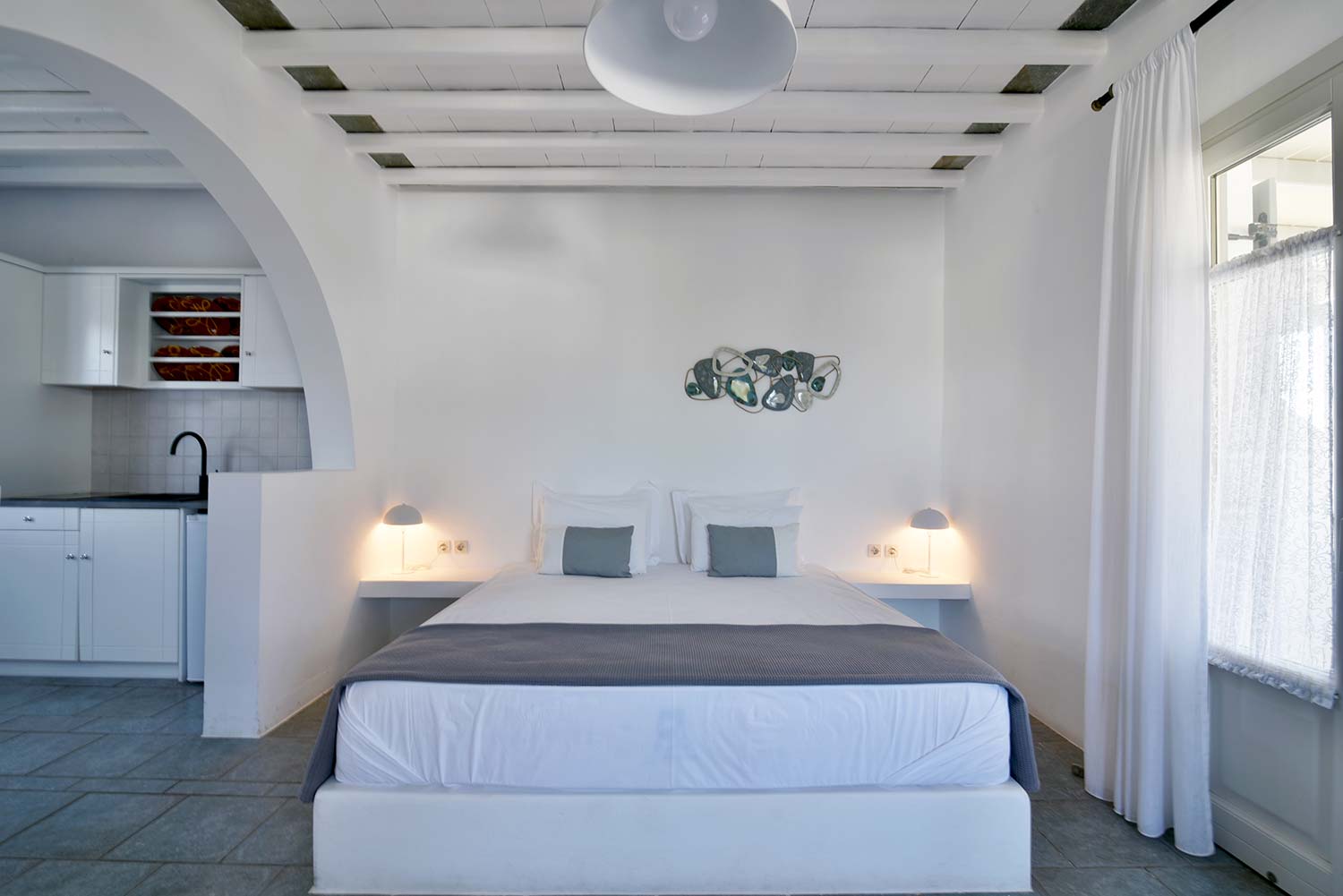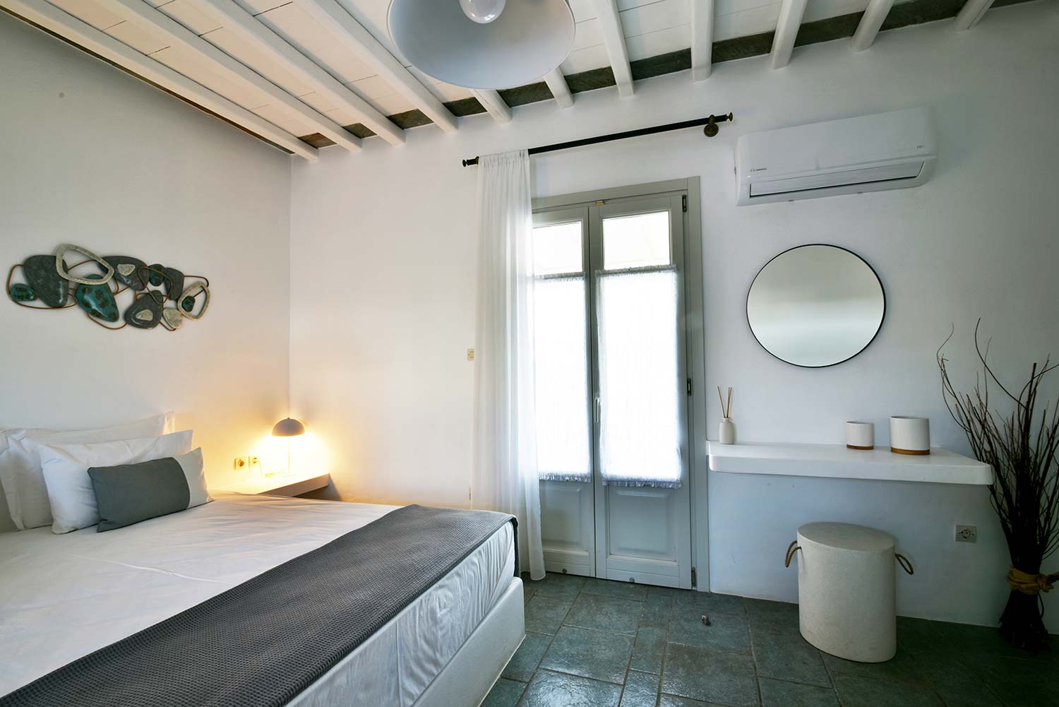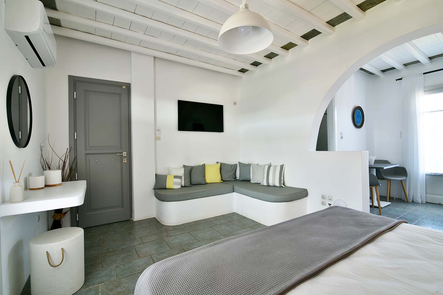 ενώ αυτό που θα σας κερδίσει είναι η νησιώτικη βεράντα με θέα προς τον καταπράσινο κήπο και τον παραδοσιακό οικισμό.