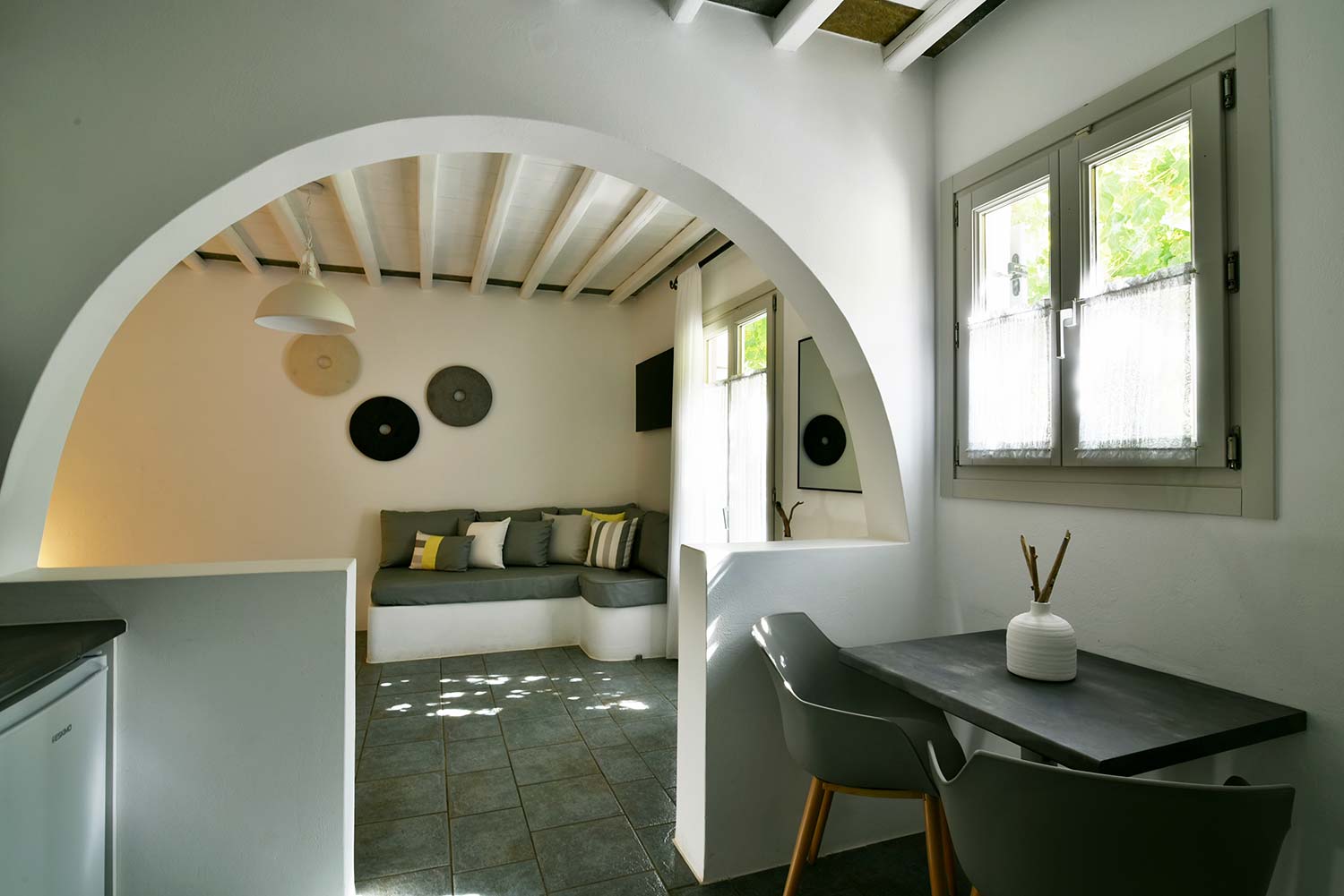 δημιουργούν ένα διαμέρισμα γαλήνιο και ευχάριστο, ενώ ανοίγοντας την μπαλκονόπορτα προς την ιδιωτική αυλή σας,