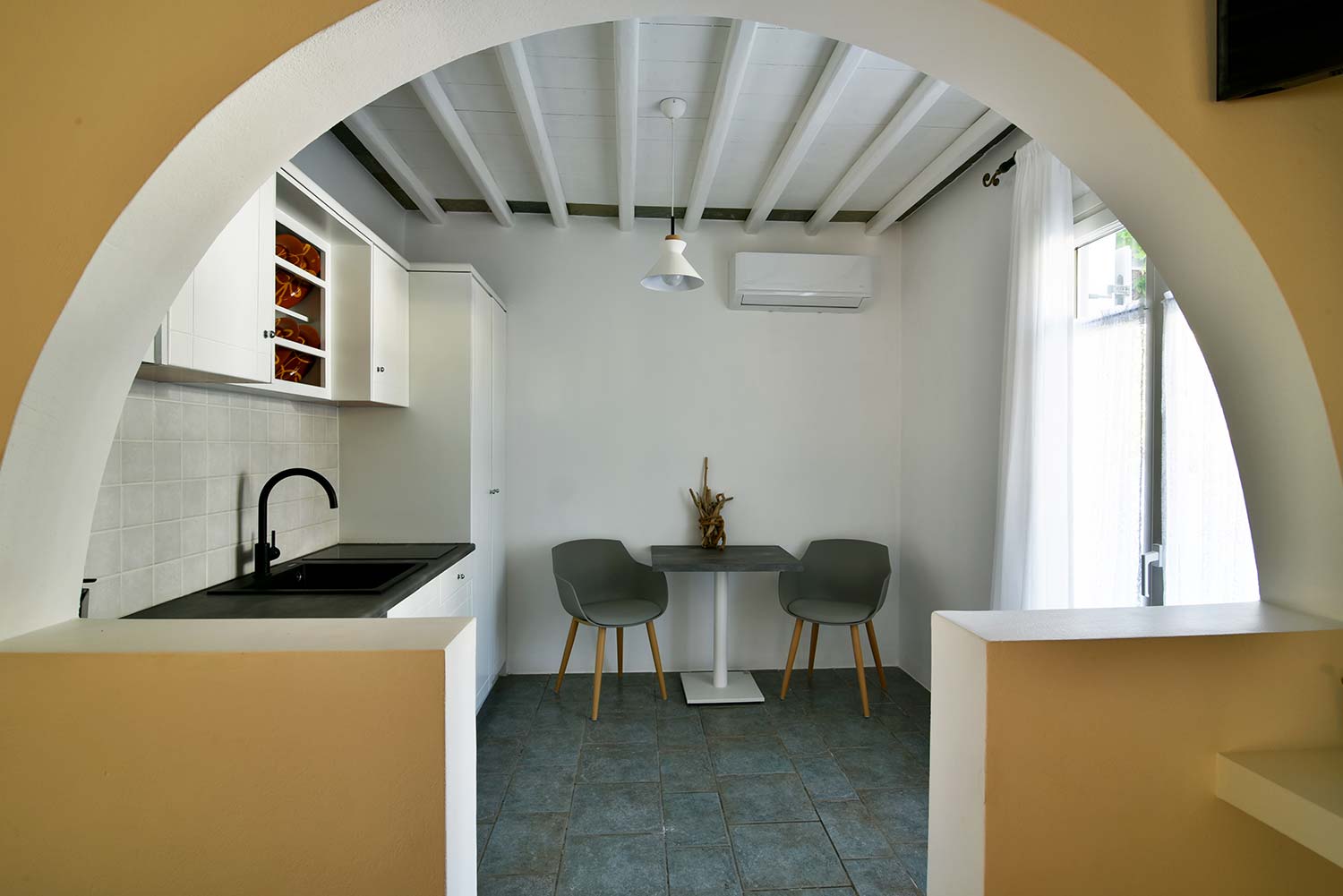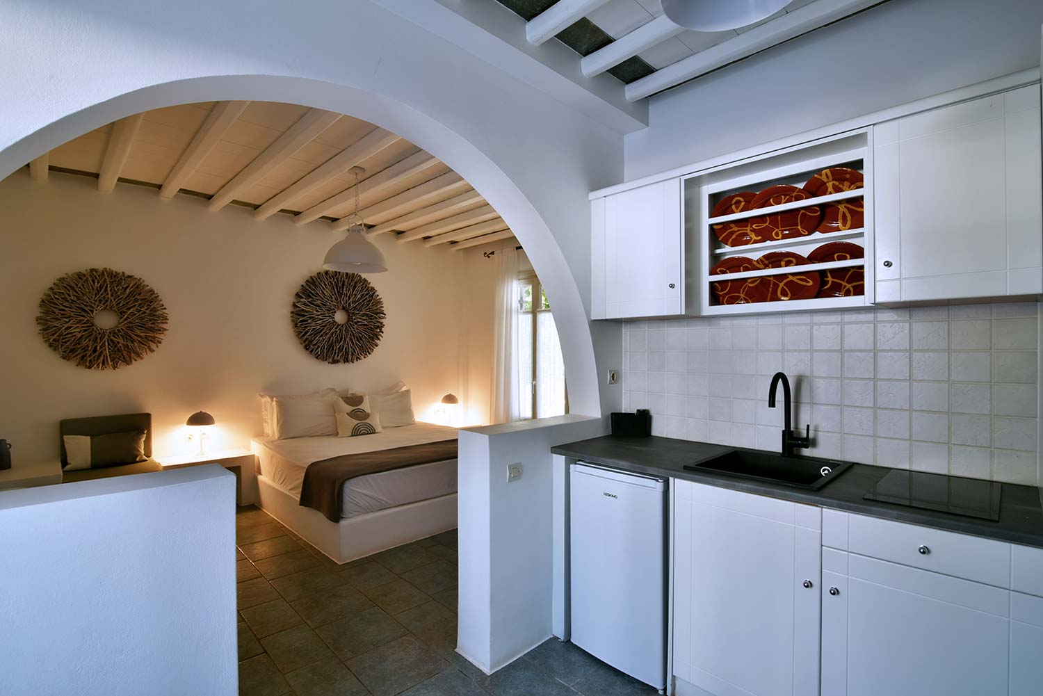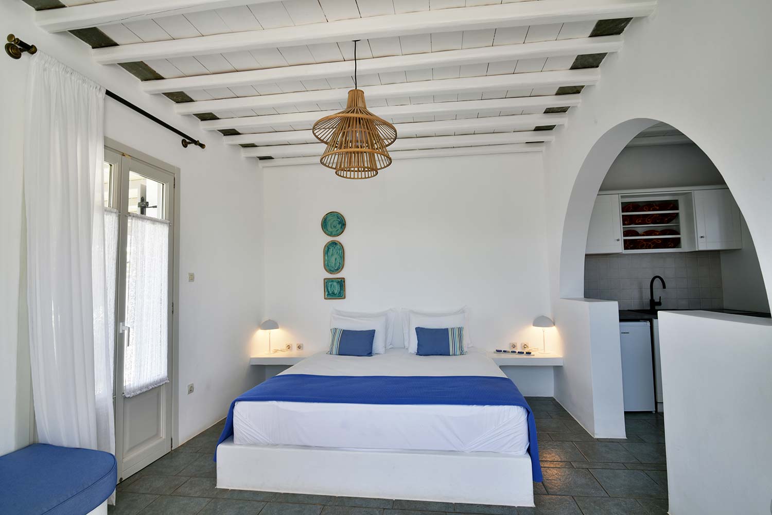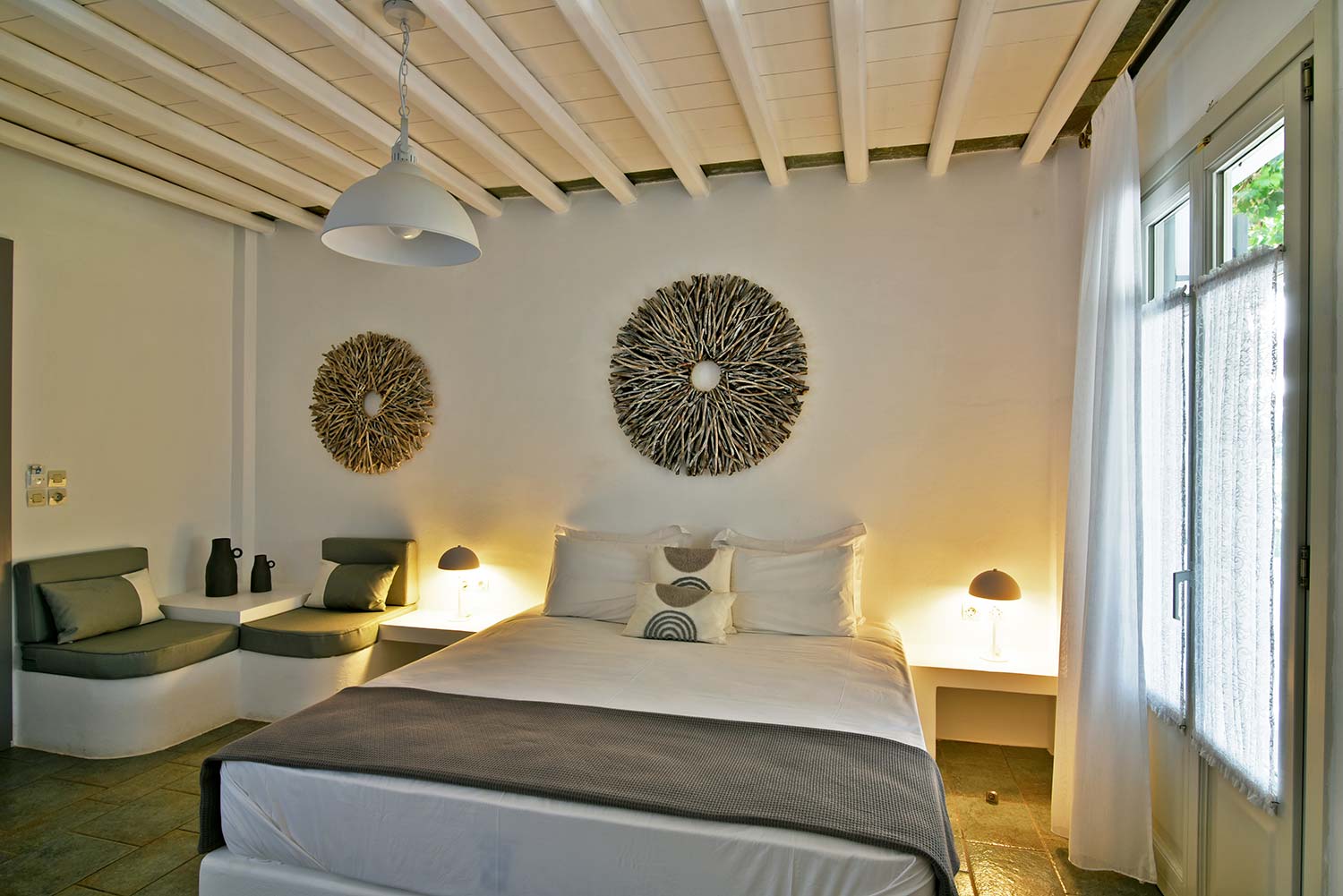 ενώ αυτό που θα σας κερδίσει είναι η νησιώτικη βεράντα με θέα προς τον καταπράσινο κήπο και τον παραδοσιακό οικισμό.