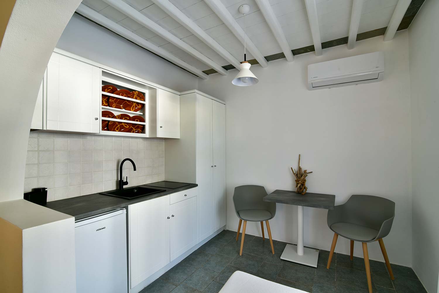 κτιστό κρεβάτι και καθιστικό, μοντέρνο μπάνιο και οργανωμένη κουζίνα το κάνουν ιδιαίτερα πρακτικό,