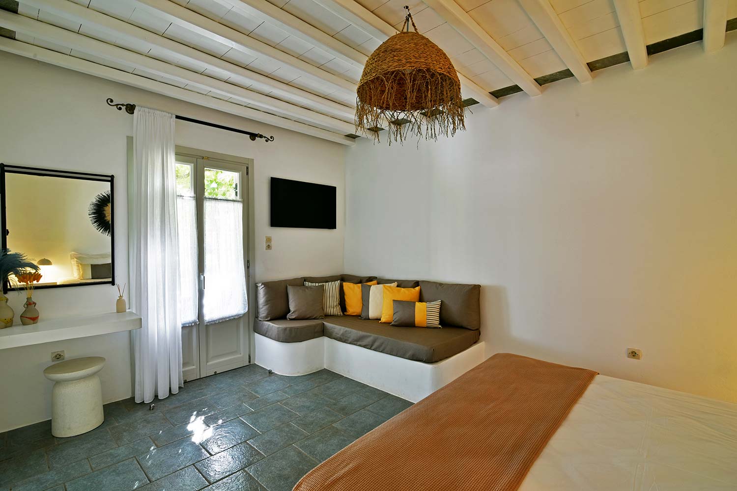 δημιουργούν ένα διαμέρισμα γαλήνιο και ευχάριστο, ενώ ανοίγοντας την μπαλκονόπορτα προς την ιδιωτική αυλή σας,
